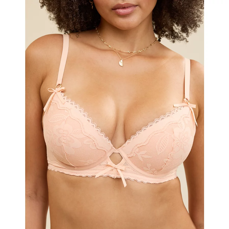 Show Off Feeling Femme Lace Plunge Push Up Bra – Peach