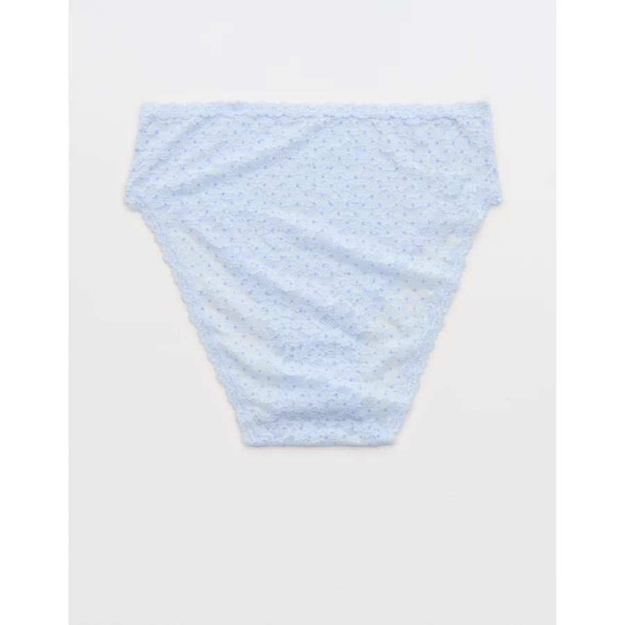 Show Off Flocked Vintage Lace High Waisted Bikini Underwear – Eyelet Blue