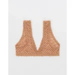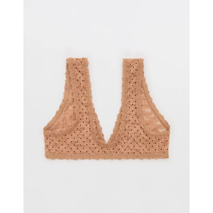 Show Off Flocked Vintage Lace Plunge Bralette – Beach Dune