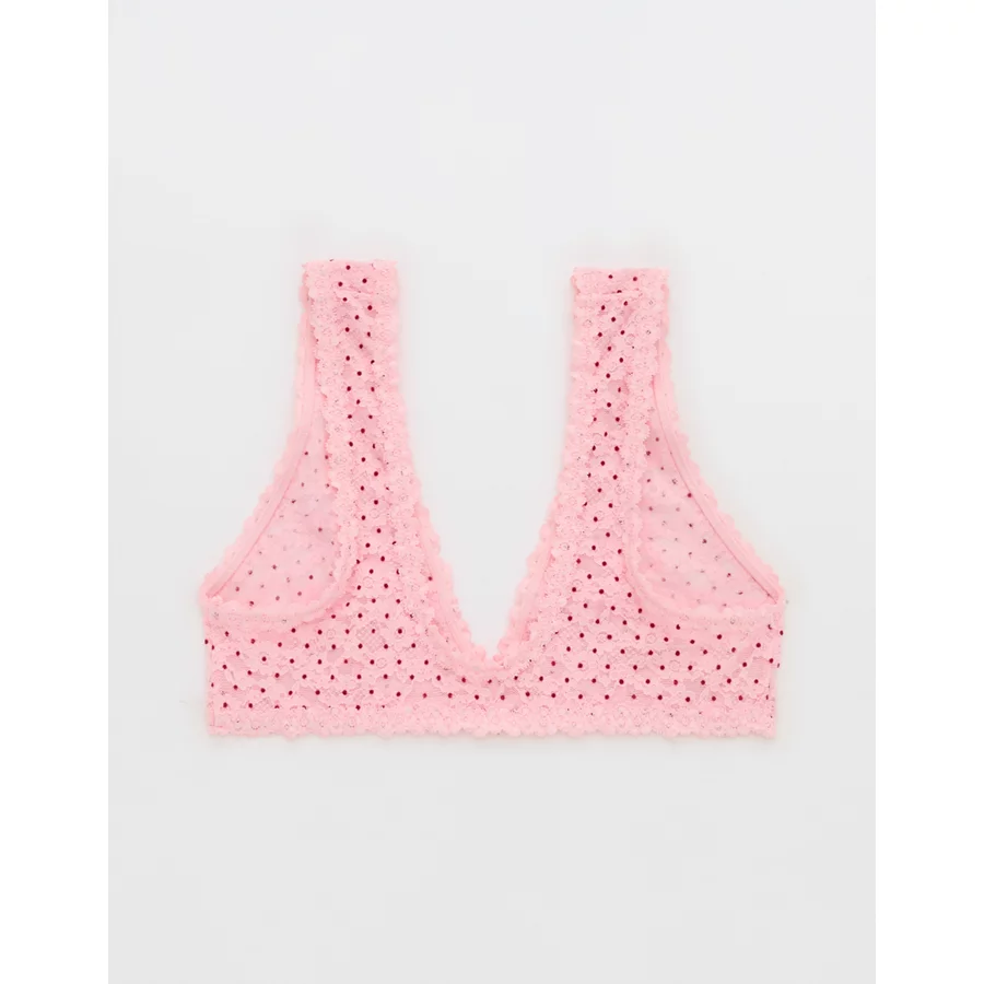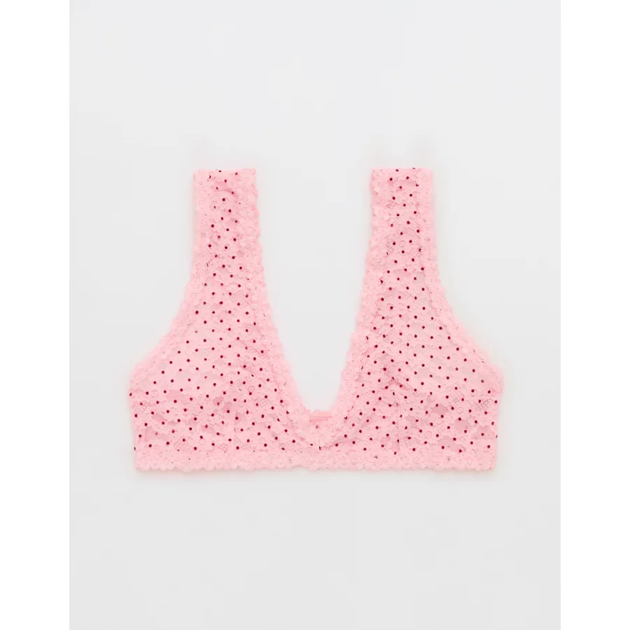 Show Off Flocked Vintage Lace Plunge Bralette – Club Pink