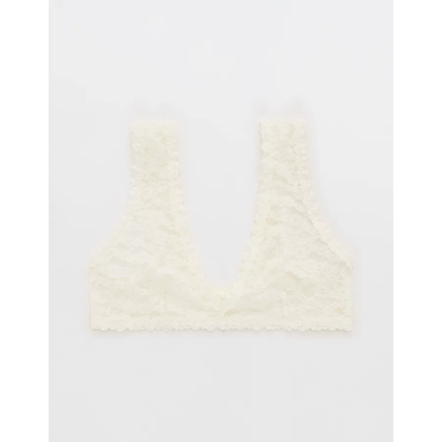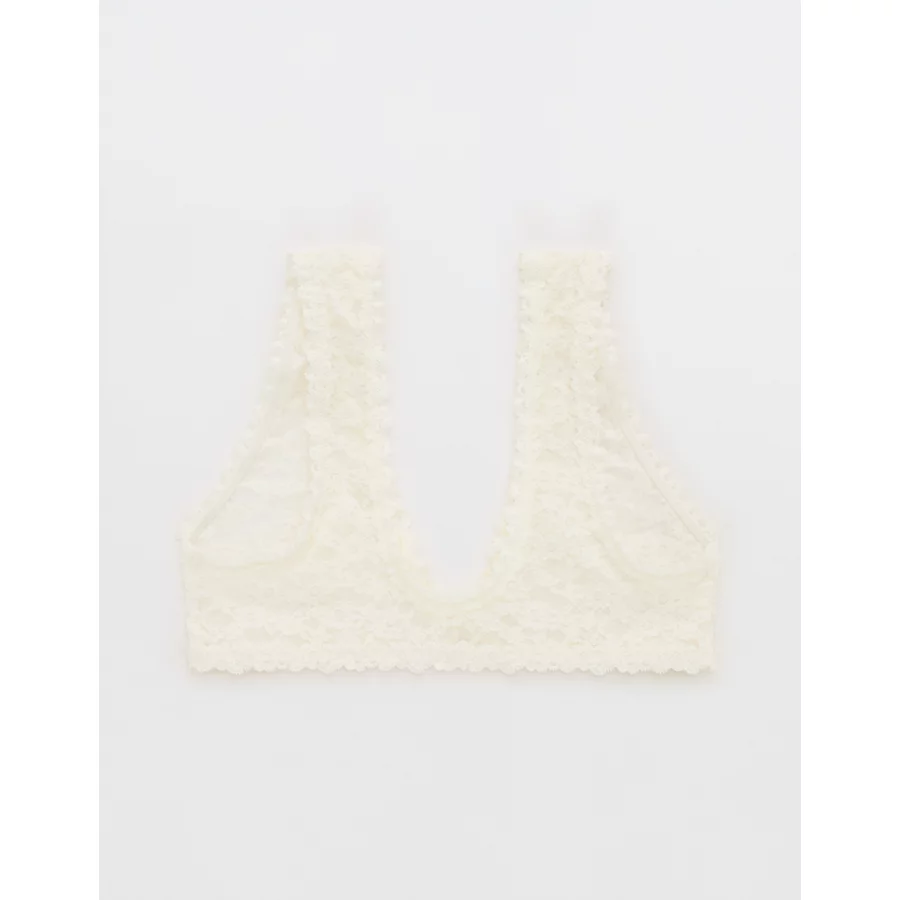 Show Off Flocked Vintage Lace Plunge Bralette – Soft Muslin