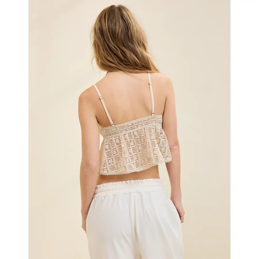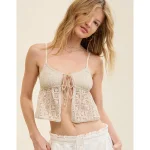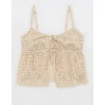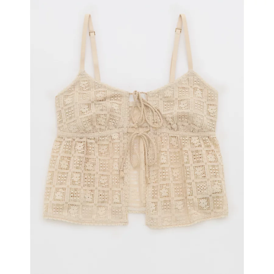 Show Off High Tide Lace Tie Front Tank Top – Soft Oat
