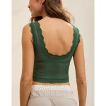 Design: Deep plunge neckline. Crop length hits just at the waist.