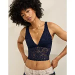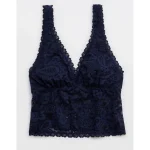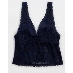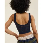 Show Off Paisley Lace Padded Plunge Tank Top – Navy