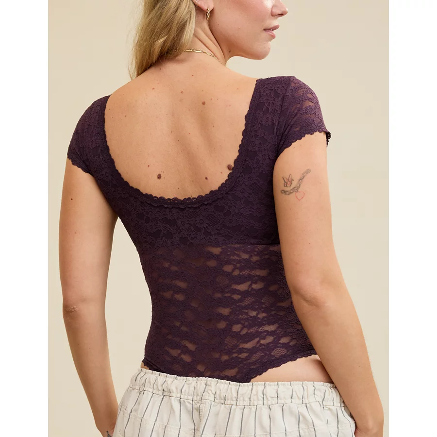 Show Off Vintage Lace Short Sleeve Bodysuit – Cool Berry