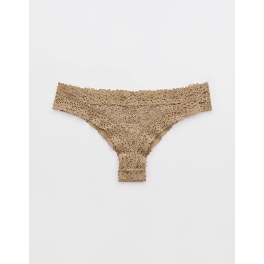 Show Off Vintage Lace Trim Thong Underwear – Beige