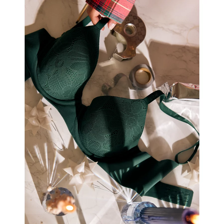 SMOOTHEZ Lace Full Coverage Lightly Lined Bra – Rugged Green