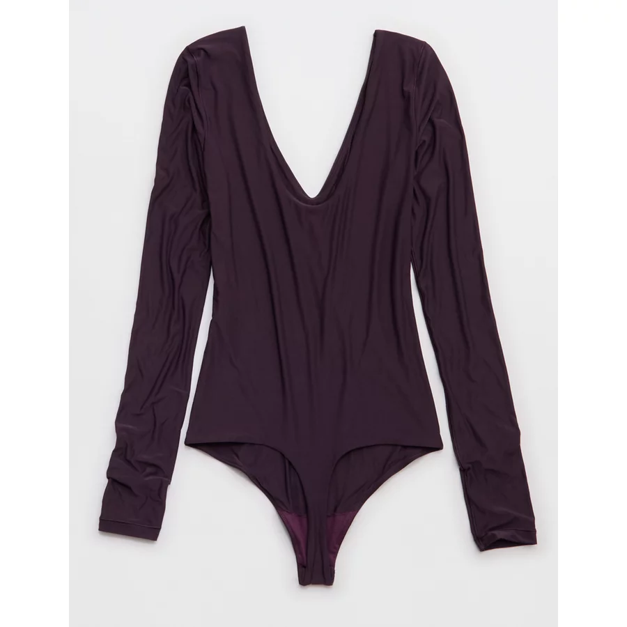 SMOOTHEZ Long Sleeve Plunge Bodysuit – Cool Berry