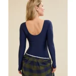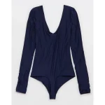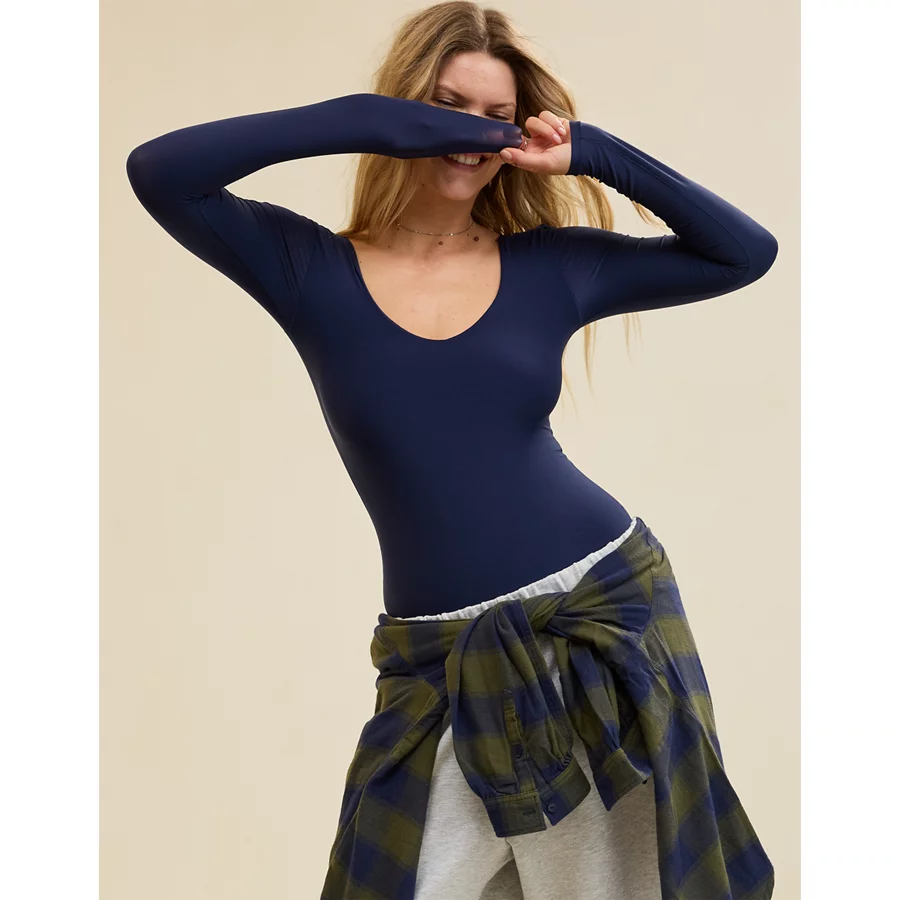 SMOOTHEZ Long Sleeve Plunge Bodysuit – Navy