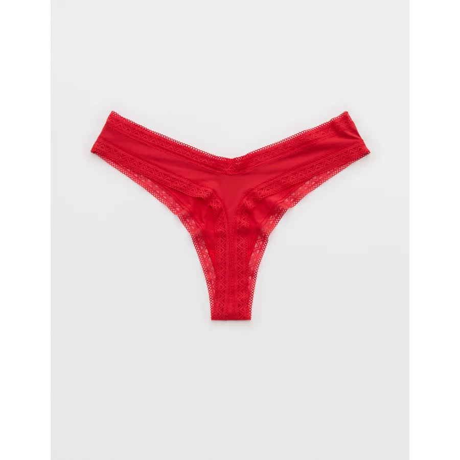 SMOOTHEZ Microfiber Lace Thong Underwear – Bright Red
