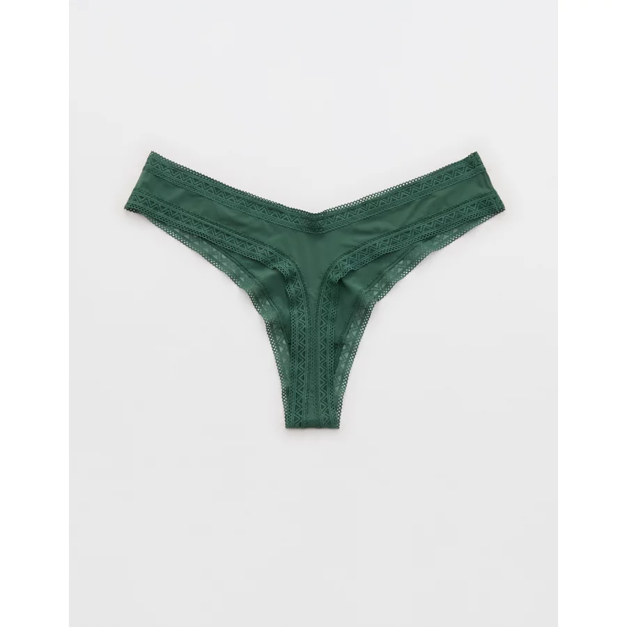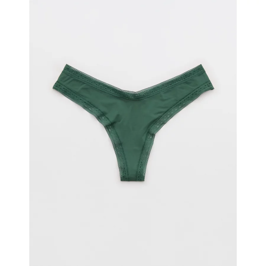 SMOOTHEZ Microfiber Lace Thong Underwear – Rugged Green