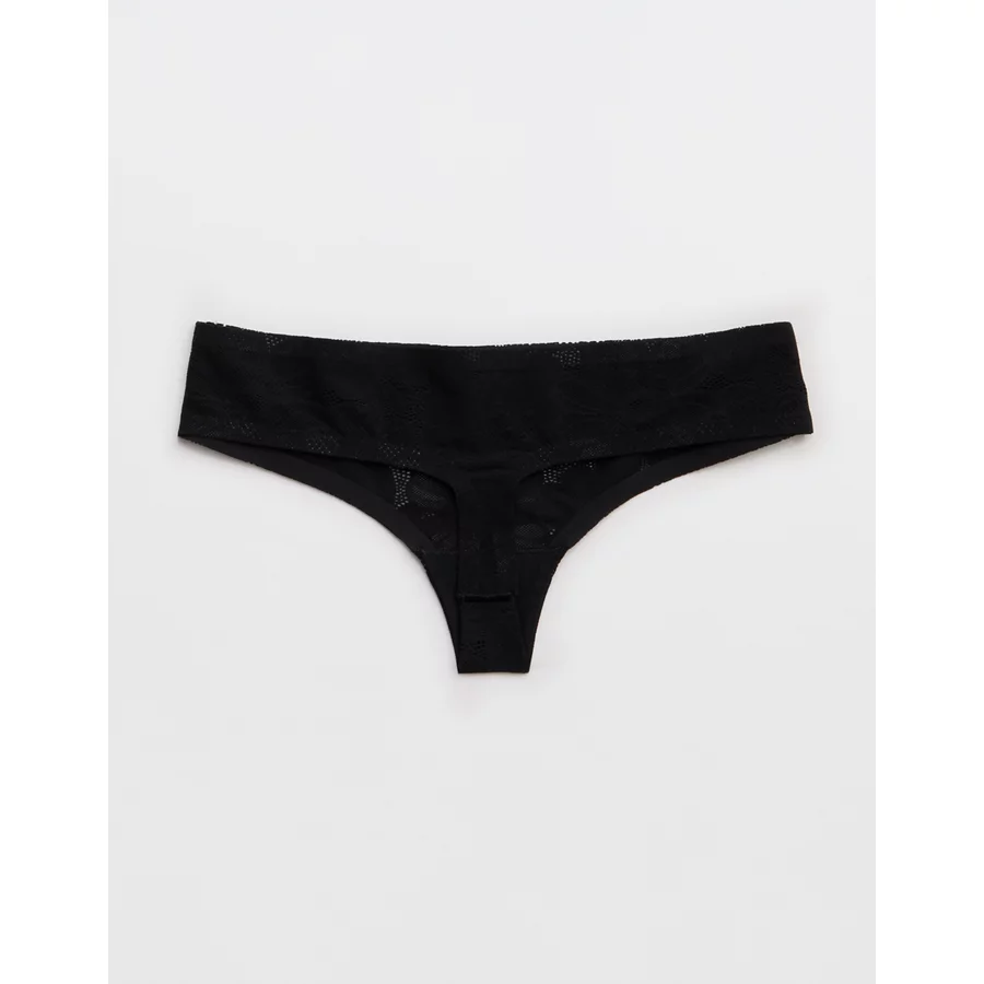 SMOOTHEZ No Show Lace Thong Underwear – True Black