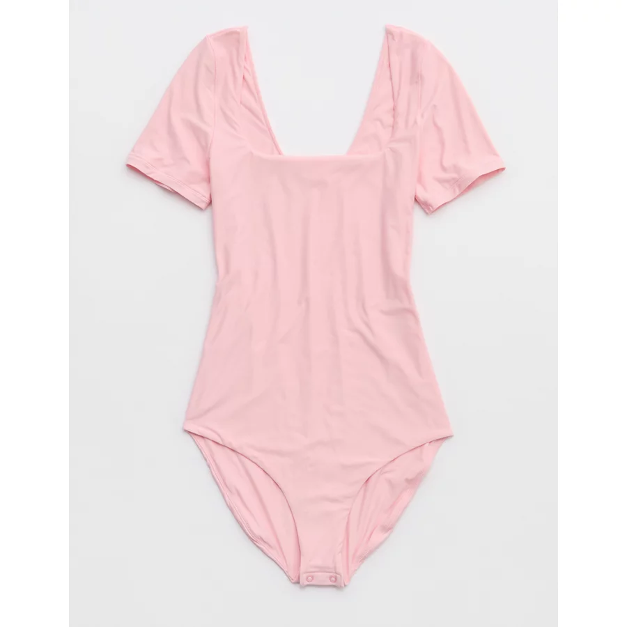 SMOOTHEZ Short Sleeve Square Neck Bodysuit – Club Pink