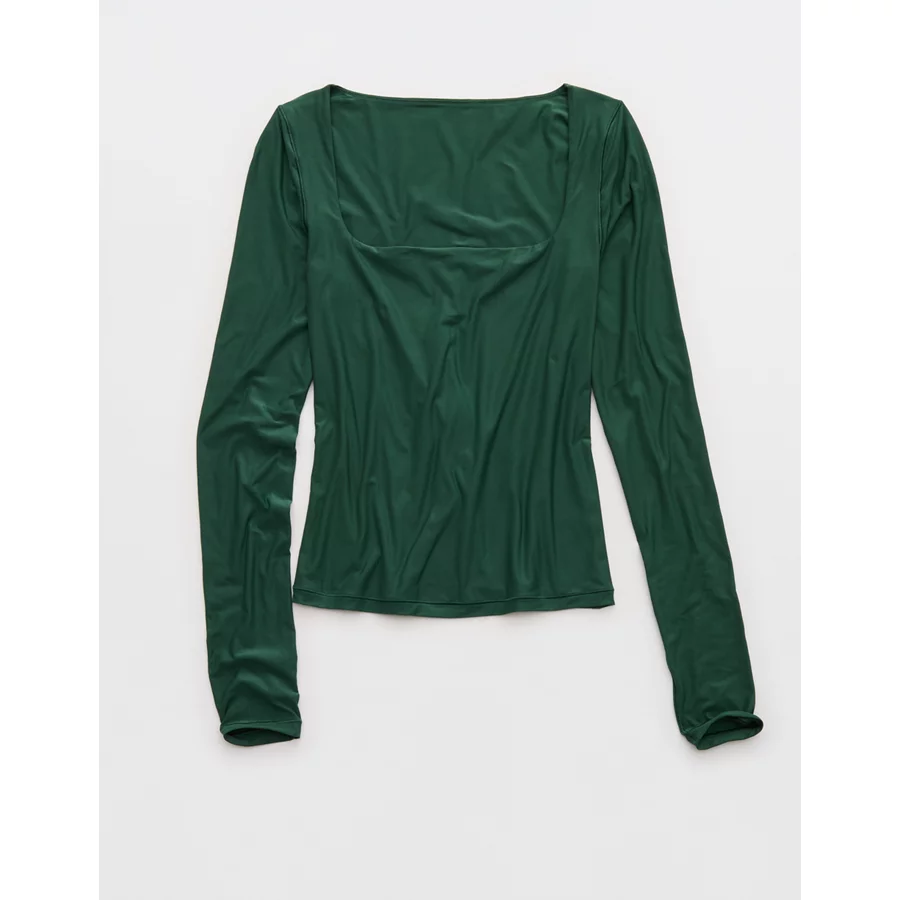 SMOOTHEZ Square Neck Long Sleeve T-Shirt – Rugged Green