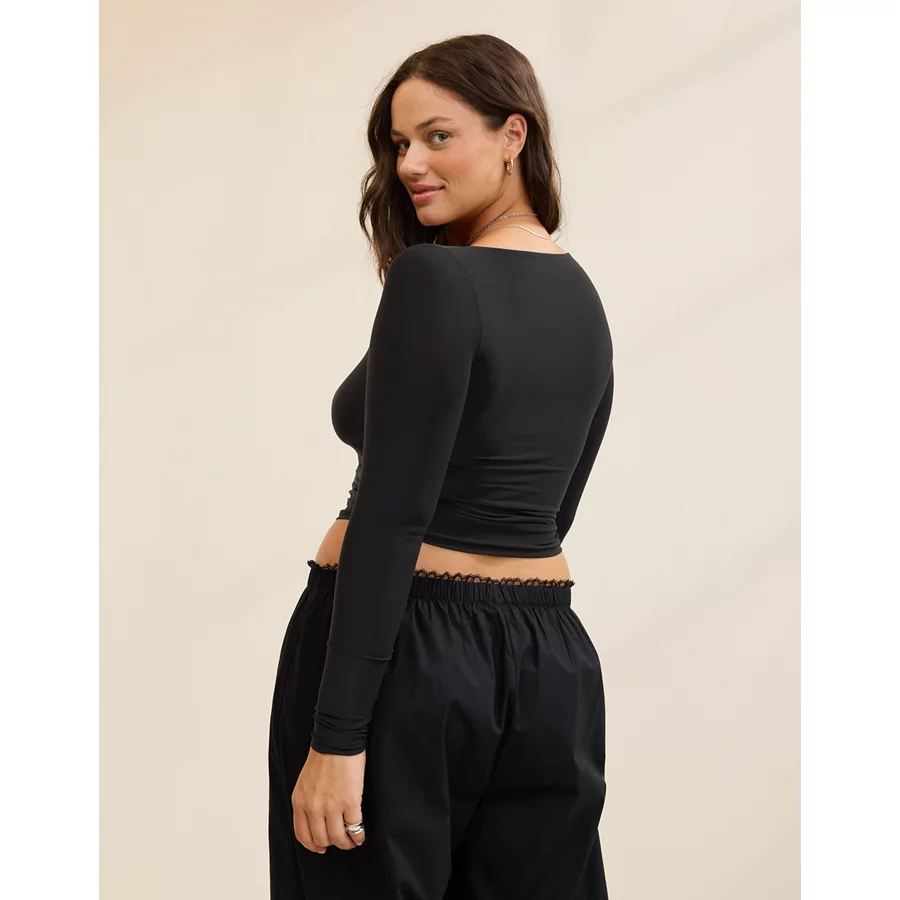 SMOOTHEZ Square Neck Long Sleeve T-Shirt – True Black