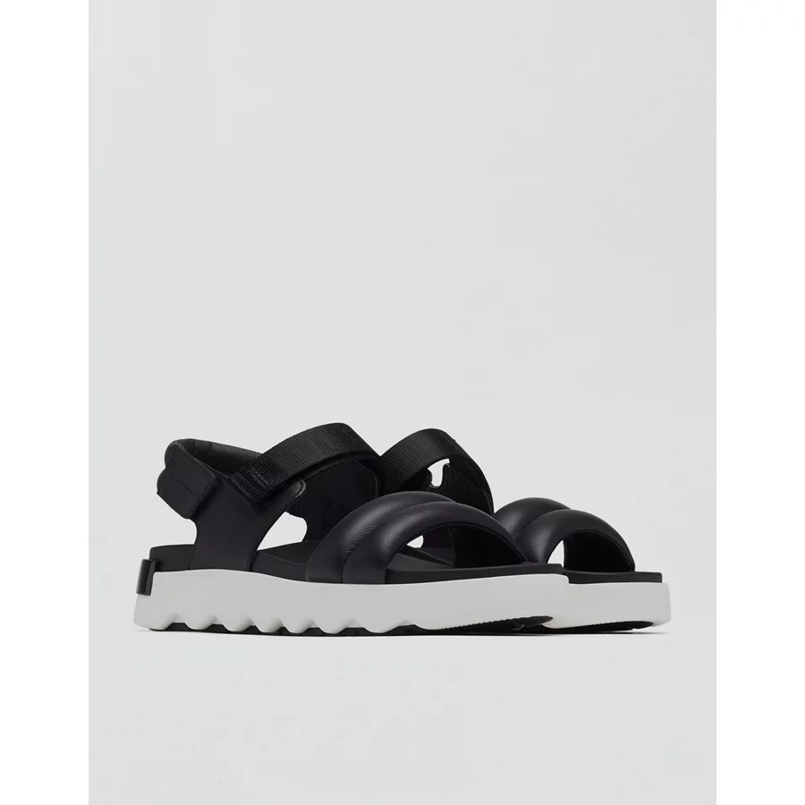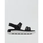 Upper: Full grain leather upper with puffed forefoot detailing. Two points of adjustability – midfoot webbing strap and heel leather ankle strap with hook and loop closures. Synthetic leather lining.