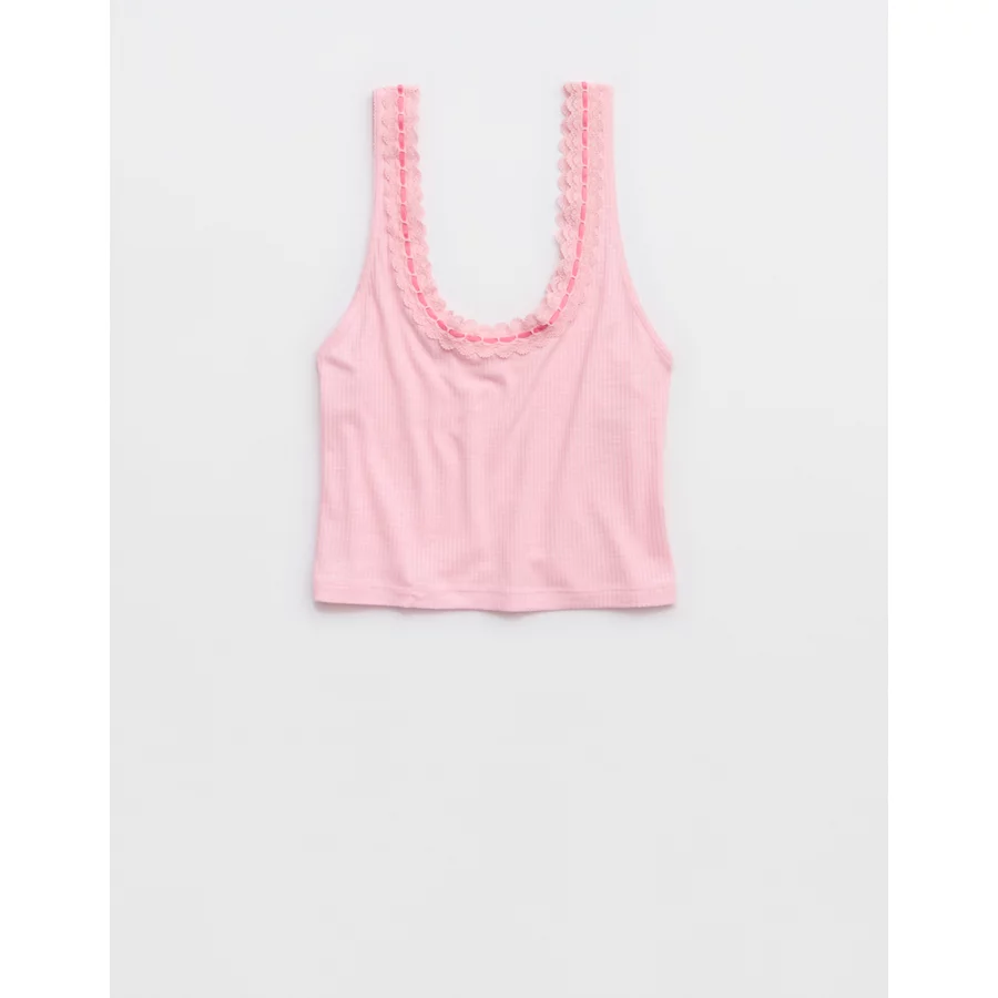 Superchill Cotton Rib Lace Tank Top – Club Pink