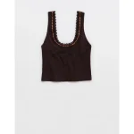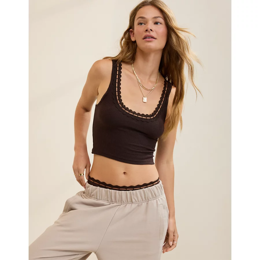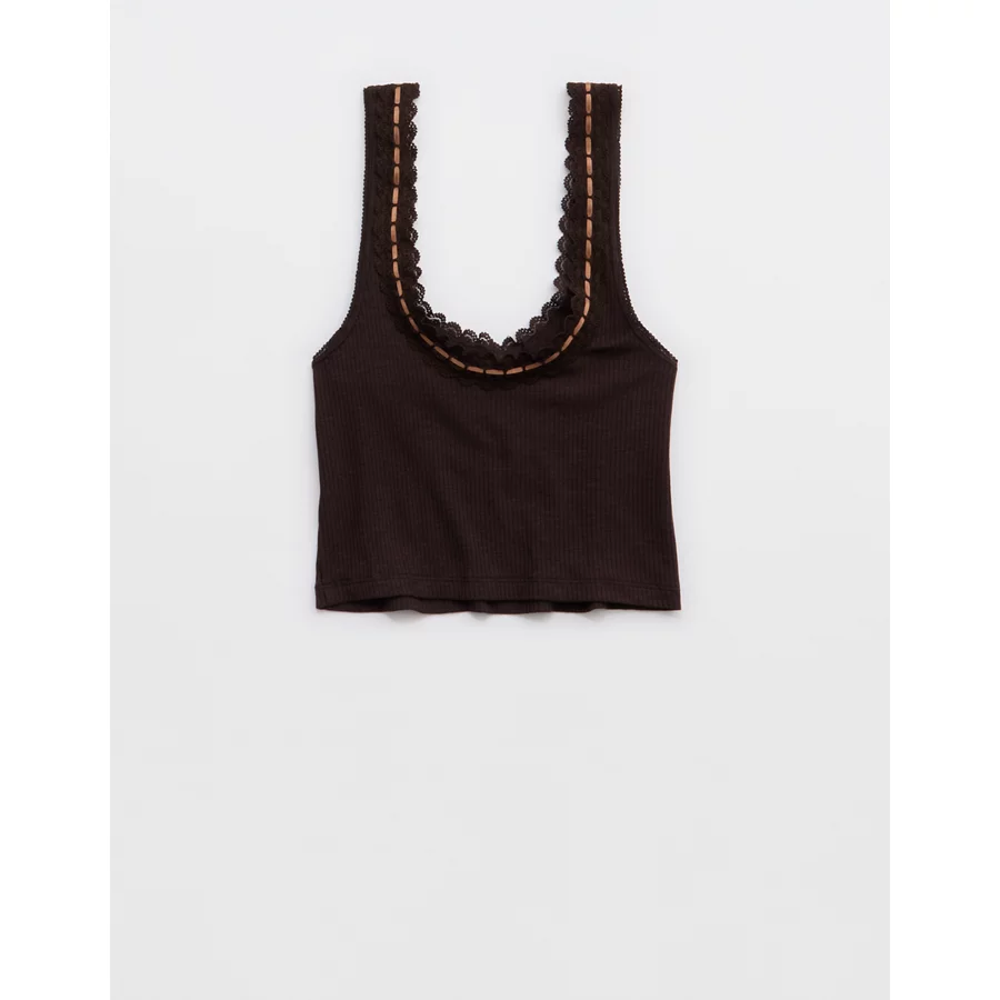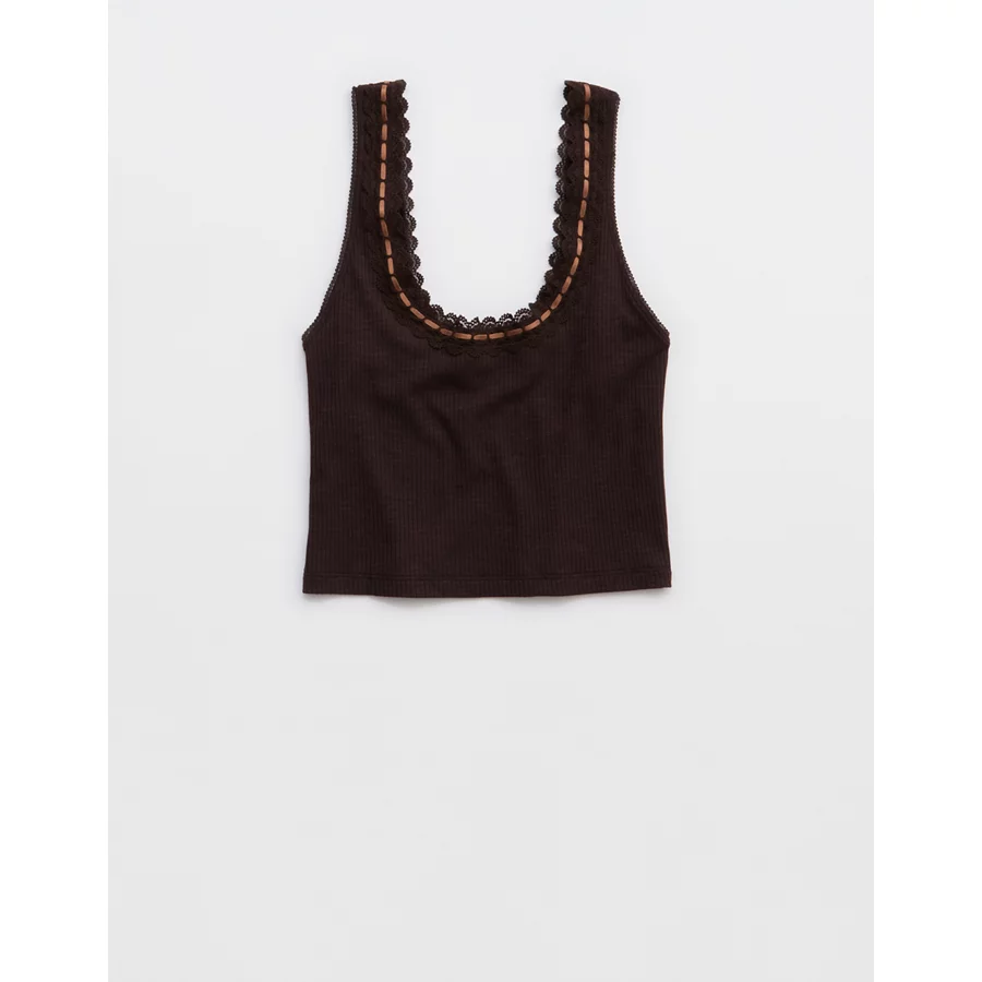 Superchill Cotton Rib Lace Tank Top – Deep Earth