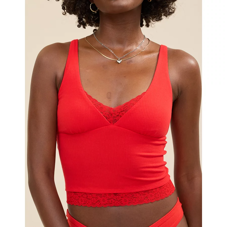 Superchill Cotton Rib Vintage Lace Tank Top – Bright Red