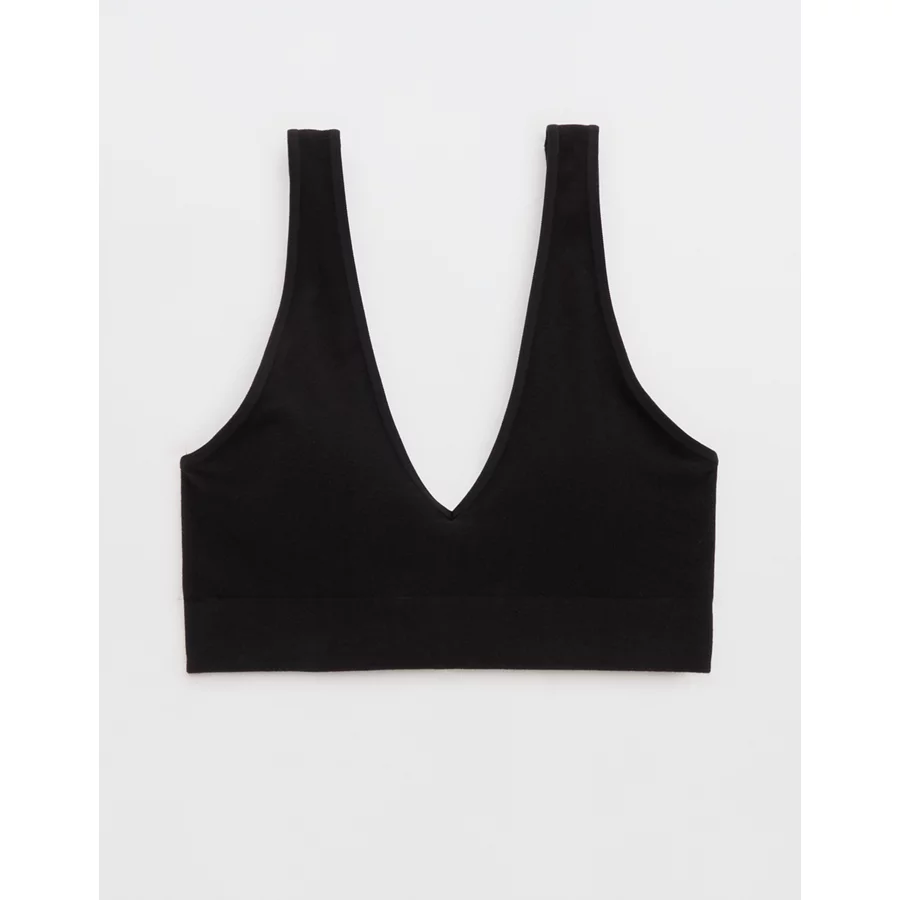 Superchill Cotton Seamless Plunge Bralette – True Black