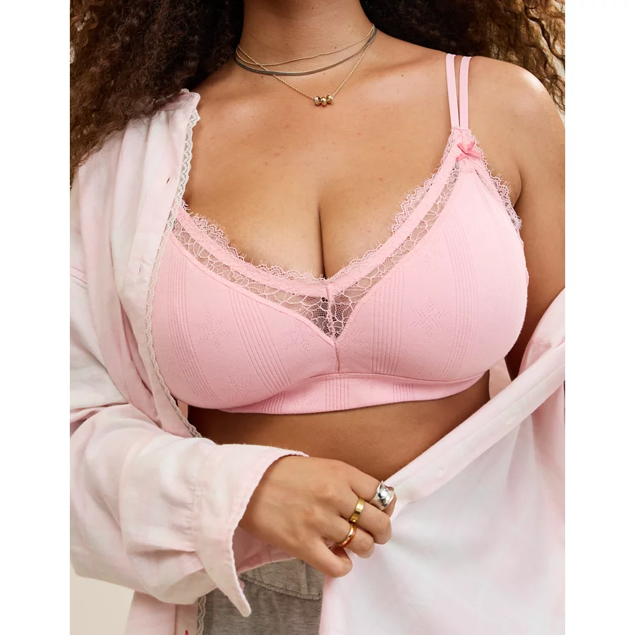 Superchill Pointelle Padded Triangle Bralette – Club Pink