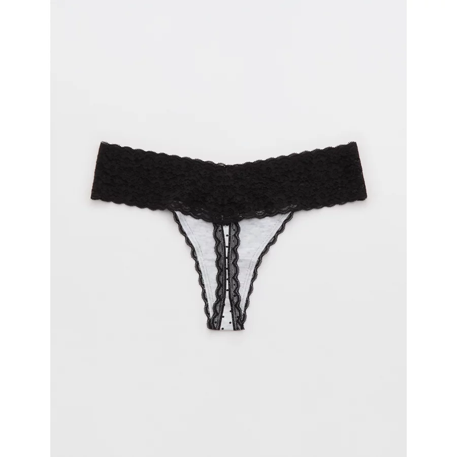 Superchill Vintage Lace Cotton Thong Underwear - Heather Frost